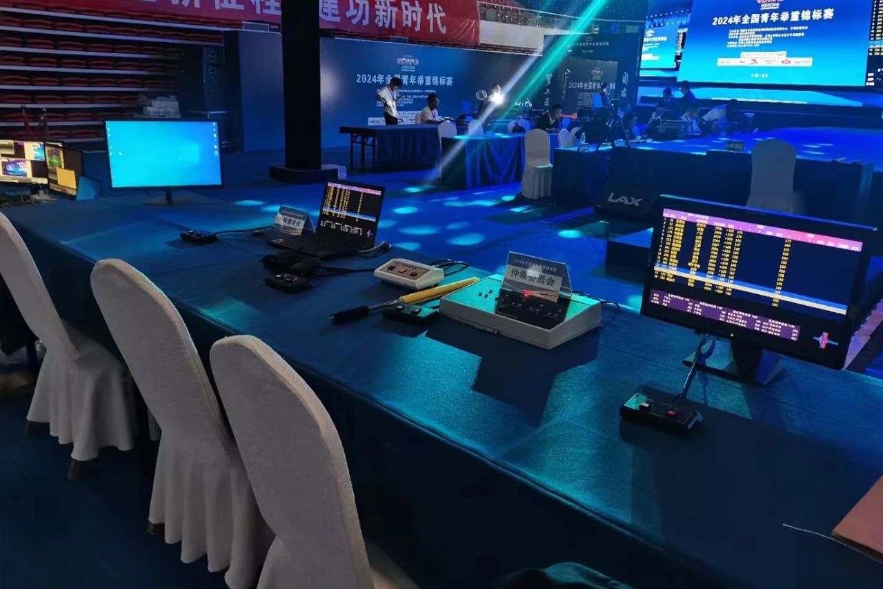 5月29日,2024年全國青年舉重錦標賽在湖北五峰民族體育館完賽。女子比賽共有30支隊伍155人進行了11個級別11場的比賽。男子比賽共有35支隊伍179人進行了11個級別14場的比賽。金陵體育為本次大賽提供計時記分系統等專用設備并全程參與成績發布,為大賽全力護航。