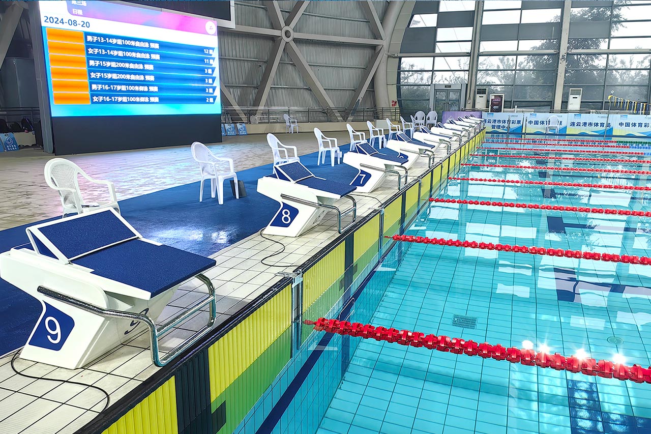 8月23日, 2024年江蘇省青少年游泳錦標(biāo)賽 在連云港體育中心游泳館精彩謝幕。金陵體育作為本次賽事的器材供應(yīng)商和賽事服務(wù)商為本次賽事提供了計(jì)時(shí)記分系統(tǒng)、仲裁錄像系統(tǒng)、視頻直播系統(tǒng)等電子設(shè)備以及場地泳道線、出發(fā)臺(tái)等競賽器材。