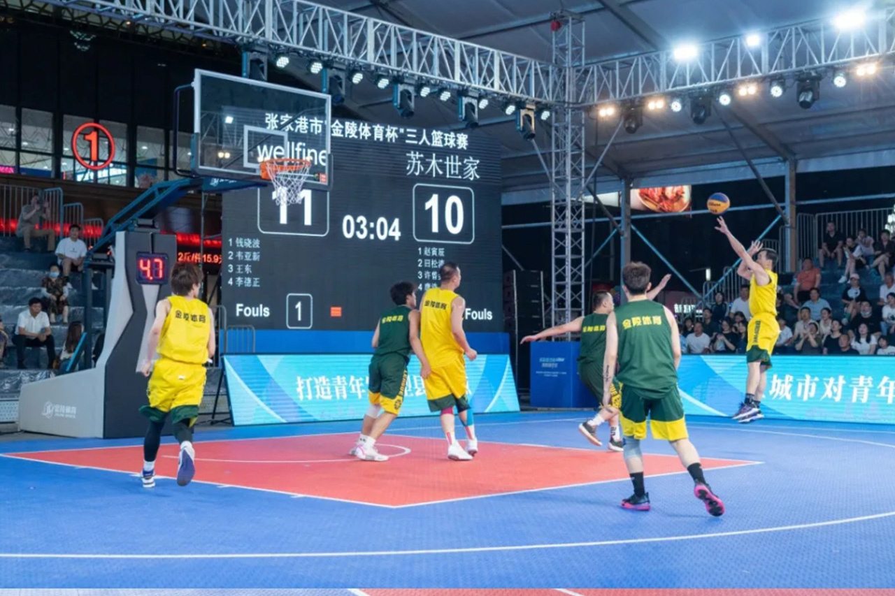 9月10日,“多彩夜沙洲”三人籃球嘉年華在張家港市金茂覽秀城拉開了帷幕。金陵體育為本次賽事提供了比賽器材、看臺座椅以及相關的保障服務,確保了本次賽事的圓滿成功。