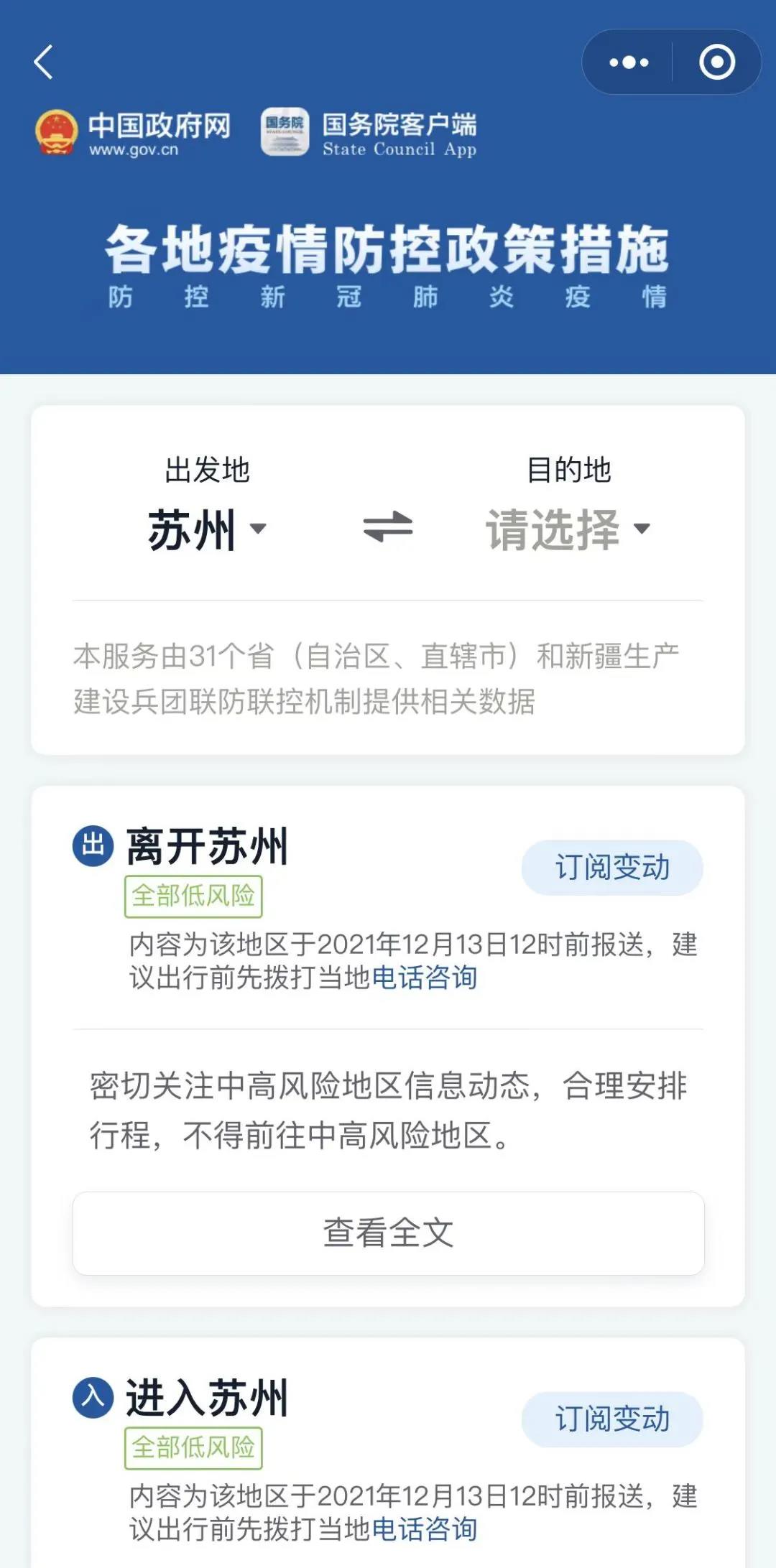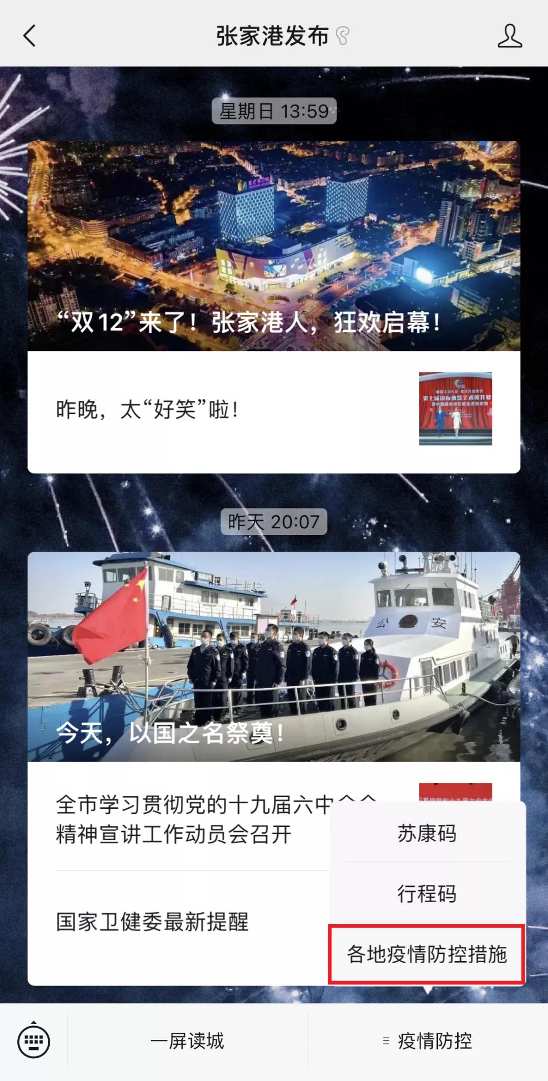 最近要出門,不知道出發地、目的地都有什么疫情防控政策措施?別著急,兩步教你查詢!在“張家港發布”微信菜單欄打開“國務院客戶端”小程序,進入后搜索“各地疫情防控政策措施”,即可搜索查詢相關信息!
